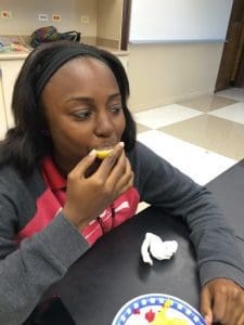 The students’ favorite class so far was our fruit exploration day. While learning about the background and anatomy of different types of fruit from all over the world, we were also able to taste test them. The class’s favorites were plums and apples. The students were amazed to find out there are over 7,500 different cultivars of ap