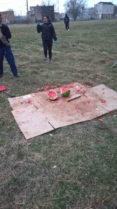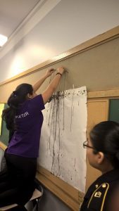 For DNA, they learned about what kind of DNA can be found at Crime Scenes, and how DNA is collected. The lab they did, was being able to extract the DNA cells from a banana and strawberry. Bloodstain pattern analysis was what we talked about that next week. We talked about the different types of patterns and bloodshed that can be found at crime scenes. They made their own fake blood and did two different labs. They created their own type of patterns and also they used the pipets to test at what height the blood droplet changes. They also learned about the math behind figuring where the bloodshed took place and at what height. They learned about that by calculating the area of convergence and area of origin. Besides the math portion, they learned about what the show Dexter does, and learned about “stringing.” We took one of our labs outside one day, and smashed watermelons. This was to determine on how different types of instruments/weapons can cause different impact and back spatter.