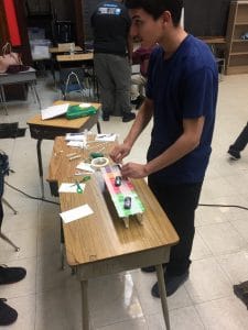 Although the students didn’t know what a patent was, they soon realized how important it was in the field of engineering if you want to protect your ideas. The boys were prompted to do a bridge building activity in couples using certain designs that Ernest references to. The task lasted about thirty minutes, and the bridge had to meet certain height clearances in order to pass the test. Also, the bridge had to be able to hold and pass through two toy cars. All of the couples had good ideas, and the couple that won had the best original idea according to Mr. Ernest. Activities like these are great for students, allowing them to show their creative side and learn while doing so.