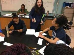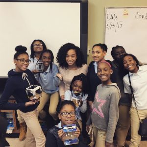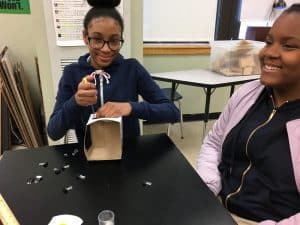 Ms. Katrina a physicist from University of Chicago came into program and challenged the students to make their own Newton’s Cradles. At the end of program Alayja told me “I loved trying to figure out how to make the beads swing back and forth! Each of the groups were different!” The open-endedness of this lesson and challenge was great for the girls to see that there isn’t just one way to solve a problem like this!