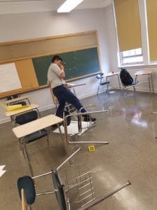 creating a mock crime scene. LuzMarie Bond, Jacqueline Ortiz, Anthony Elizalde, Melissa Herrera, Grace Batalla, and Briana Quezada all had fun creating a mock crime scene. They had created a scene where I had to solve it.