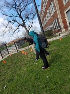 The last thing they had learned was Crime Scene Investigation. They went over on what to do when you get to a Crime Scene. Such as observing the crime scene, take notes, take photos, sketch the Crime Scene, and then finally collect the evidence. One of the activities that they enjoyed was when we went outside and I had them choose one of the search methods they learned. They chose the line method, where they had to work together to find the coins that I tossed into the field. Everything that the students have learned throughout the program, they got to piece together by solving a Mock Crime Scene, and