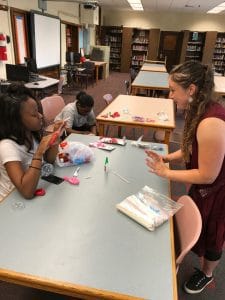 With such a great beginning, I knew things would only get better. Throughout the rest of the week, the teens discussed acids and bases, combustion, polarity, ions, and homogenization. Initially, the students were encouraged to delve into finding out more about each activity – the idea being they should strive to know and understand the concepts surrounding the activities as best they can. The more one knows the minutia of a subject, the easier it is for them to put it in their own words and simplify it for others. Throughout the week, it was great to see the students begin to research a topic, and, on their own, research a term or concept when they came across something unfamiliar.