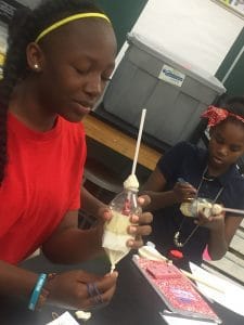 Hello world! This is Ms. Tarana, reporting live from Carter G. Woodson South School! I have had the absolute pleasure of meeting and working with 15 wonderful girls from 5th-8th grade during this past month. We’ve had gotten to know one another as well as bond over science. As a group we’ve come up with a code of conduct as known as our “Sisterly Act”, as well as get our brains working with a few experiments.