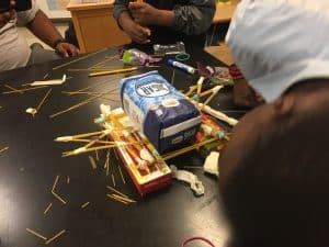After doing name introductions and settling all the program logistics, we did an ice breaking activity using marshmallows and toothpicks. Using these tools, each boy had the goal of building the tallest and sturdiest structure without falling. After a time limit of 10 minutes, all the boys would stop and test each others marshmallow structure by the “earthquake” test. The test was to bang on and shake the tables to see which structure would fall. Only one boy’s structure fell during the test but it was the highest out of all the boys. Afterwards, we all reflected and discussed about our strategies on building and how it relates to real life buildings and bridges. The boys were really energetic about the activity and loved using the marshmallows to build their structures. They seemed very open and ready to engage in more activities. In addition, they also loved the “earthquake” test and enjoyed trying to destroy each others structures too. I think as soon as things are more settled, the boys will really learn a lot from the program, and I’m so excited to help teach them new STEM topics!