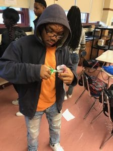 The students started in October learning about each other. Every day we greet each other and start our session with a circle where we share our names, feelings, and a daily question. Once we began to know each other we dived deeper to discuss our own environment, Austin, one of Chicago’s most dangerous neighborhoods and what we can do to improve it. Opinions varied dramatically. “Well as soon as I graduate I’m leaving and never coming back, the people here don’t care about anything but drugs” said one student who had seen some of the terror first hand. Another student countered “That’s fine but I’m staying this city is beautiful there is so much to do, it’s just this neighborhood”.