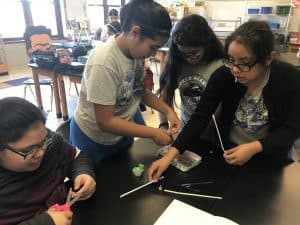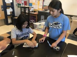 The rest of October was filled with different activities. The girls meet every Tuesday from 3:30-5:30! The last two weeks the girls played the role of an engineer. They worked together as a team to design and construct a water raft made out of only aluminum foil, straws, and tape. The goal of the activity was to hold as many pennies as they could without having their water rafts sink. We did this activity twice, since a lot of the girls wanted to modify and revise their water rafts. I asked one group how they were changing the design of their raft. Victoria, Karina, Alexia, and Shelby said, “We are going to use less tape since it weighs a lot, and we’re going to put more straws underneath the aluminum foil.” The majority of the groups were able to hold about 80-150 pennies! Lastly, the girls also designed and constructed their own catapults made out of popsicle sticks, rubber bands, and spoons.