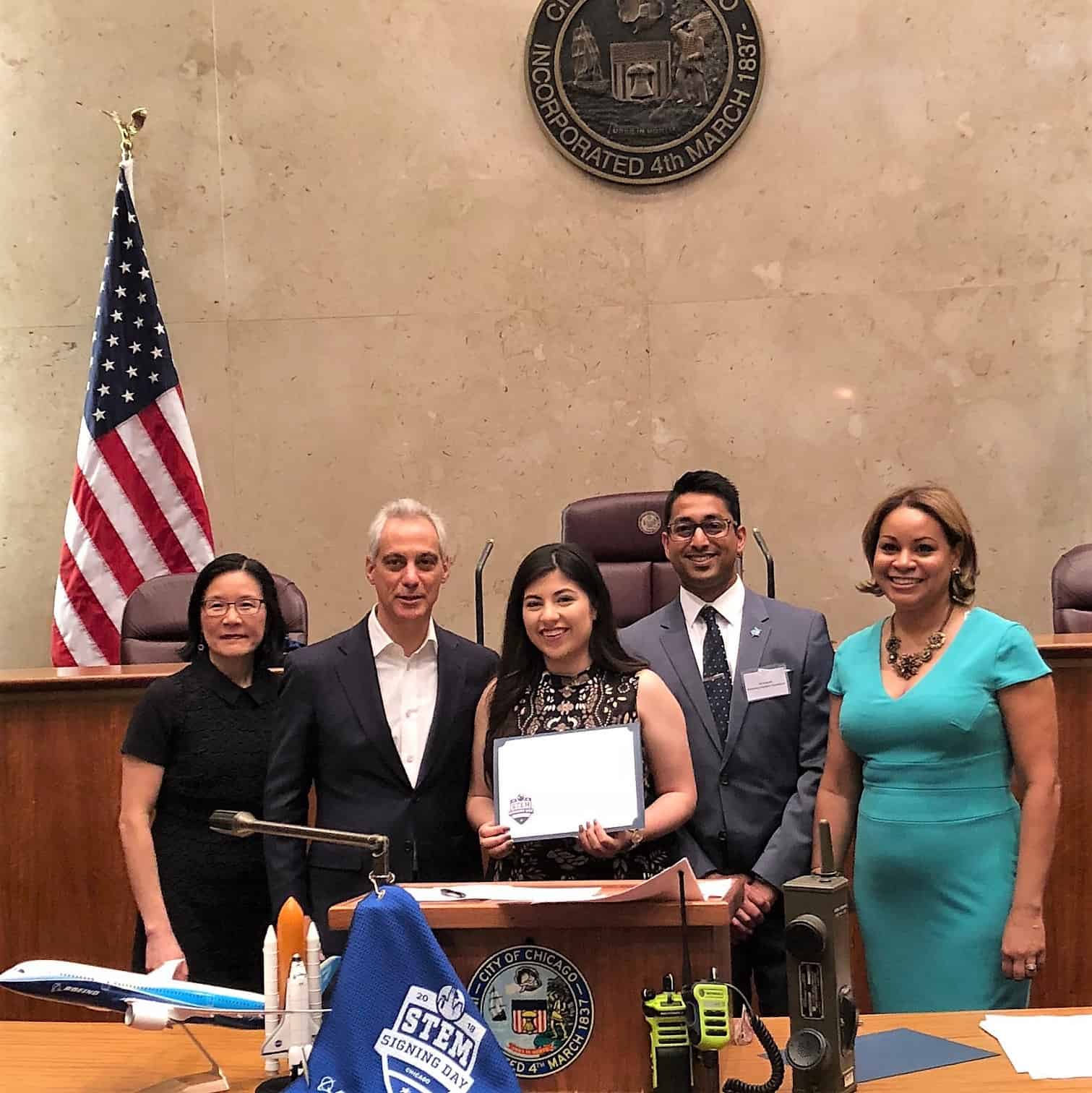 Like signing days for athletes, the inaugural Chicago STEM Signing Day will celebrate high school seniors from across the Chicagoland area as they make their commitments to some of the country’s top technical schools, colleges, and universities. These students will be applying their talents in pursuit of careers in STEM fields that will place them on the fast track to success and prepare them for careers in technical fields like those in the aerospace and telecommunications industries. STEM Signing Day will be an opportunity for the City of Chicago to highlight talented Chicago Public School high school seniors and promote a STEM workforce for our City.
