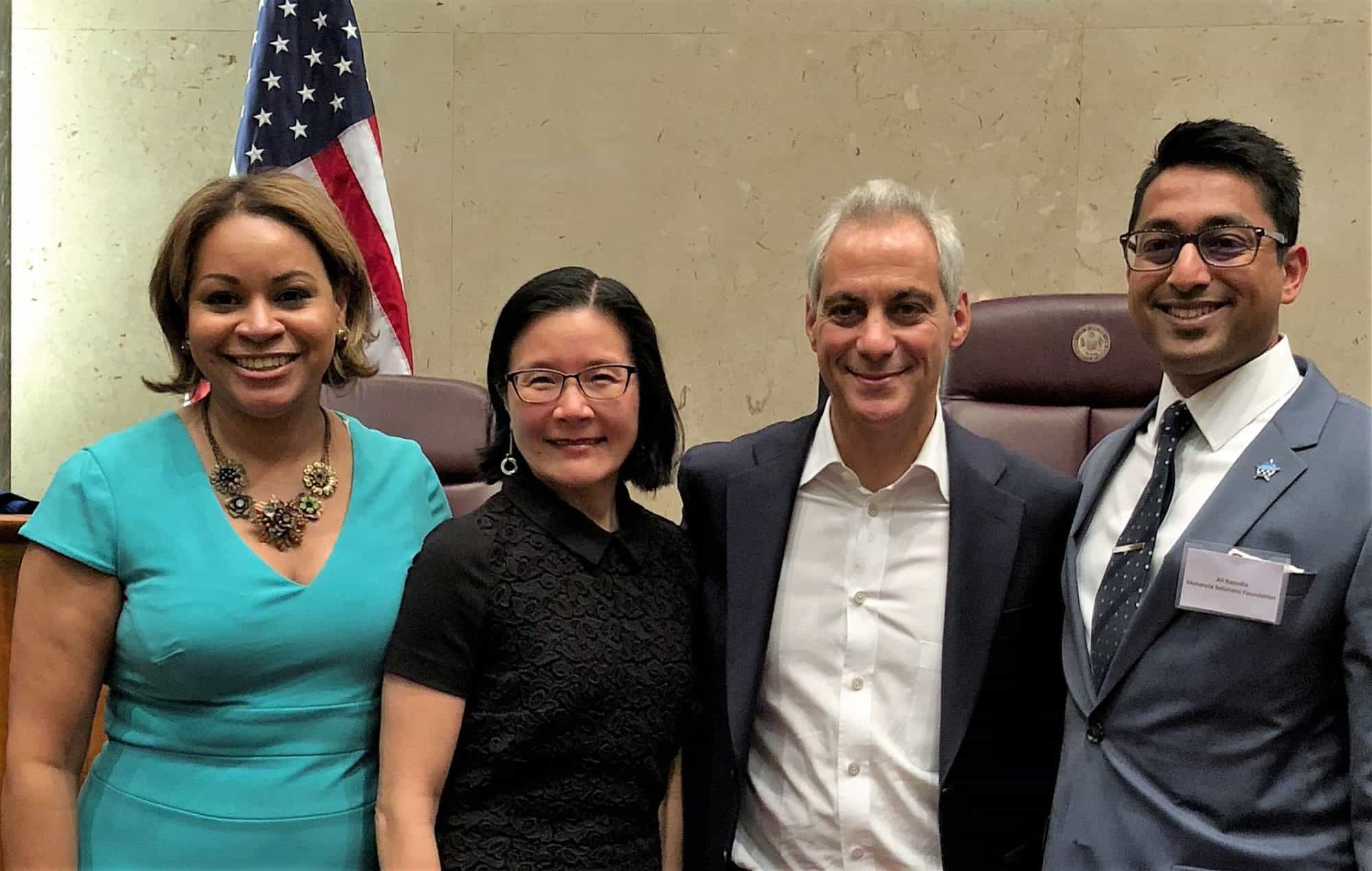 After the luncheon students filed into the Mayor’s Office Council Chambers and were welcomed with rally towels and their future schools’ banners to prepare for the celebration. Project Exploration’s Executive Director, Natasha Smith-Walker served at the MC and had the honor of introducing Dr. Janice Jackson, CPS – Chief Executive Officer, Ali Kapadia, Territory Vice President, Central US &; Canada Sales, Motorola Solutions, and Diana Sands, Senior Vice President, Office of Internal Governance and Administration, The Boeing Company.