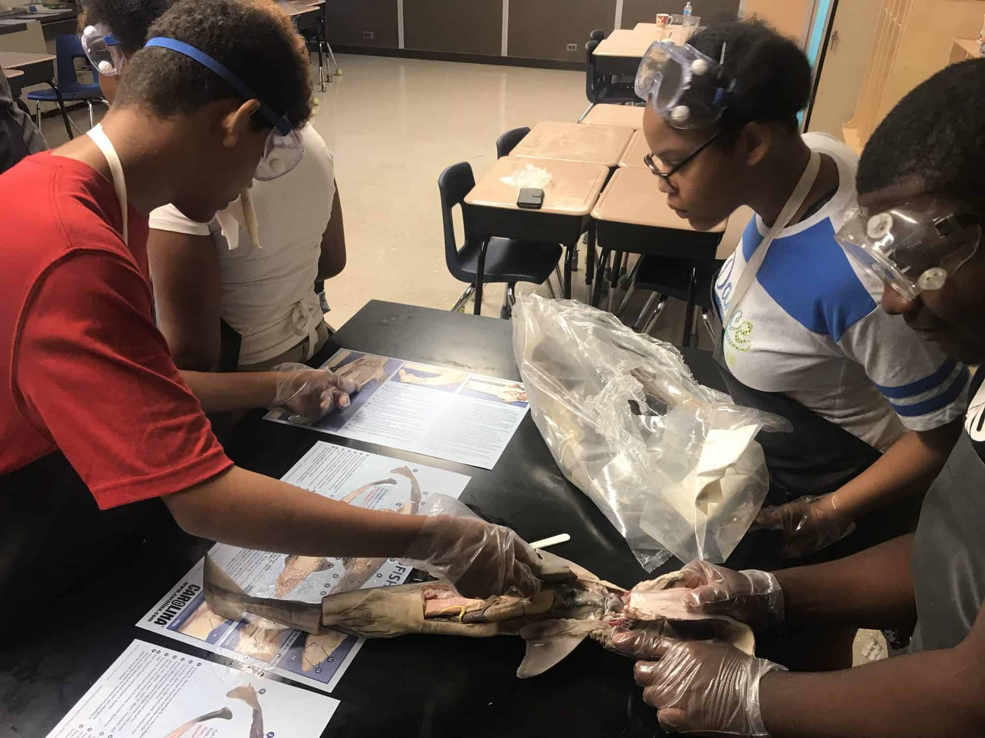 Students have gotten to experience science programming through various program opportunities like Ten80’s Student Racing Challenge, Scientists for Tomorrow, and NASA Powered and Pumped Up. During the eight week camp, students have had the opportunity to dissect frogs and sharks, program robots, build wind chimes and ArtBots, build a water pump designed for use on Mars, and learn all about the mechanics that go into building a race car. They have visited Shedd’s mobile aquarium, both Brookfield and Lincoln Park Zoo’s, took a walking tour downtown Chicago with Chicago Architecture Foundation and visited Manufacturing Renaissance’s program at Austin College and Career Academy, which trains teens, and adults in the Austin neighborhood.