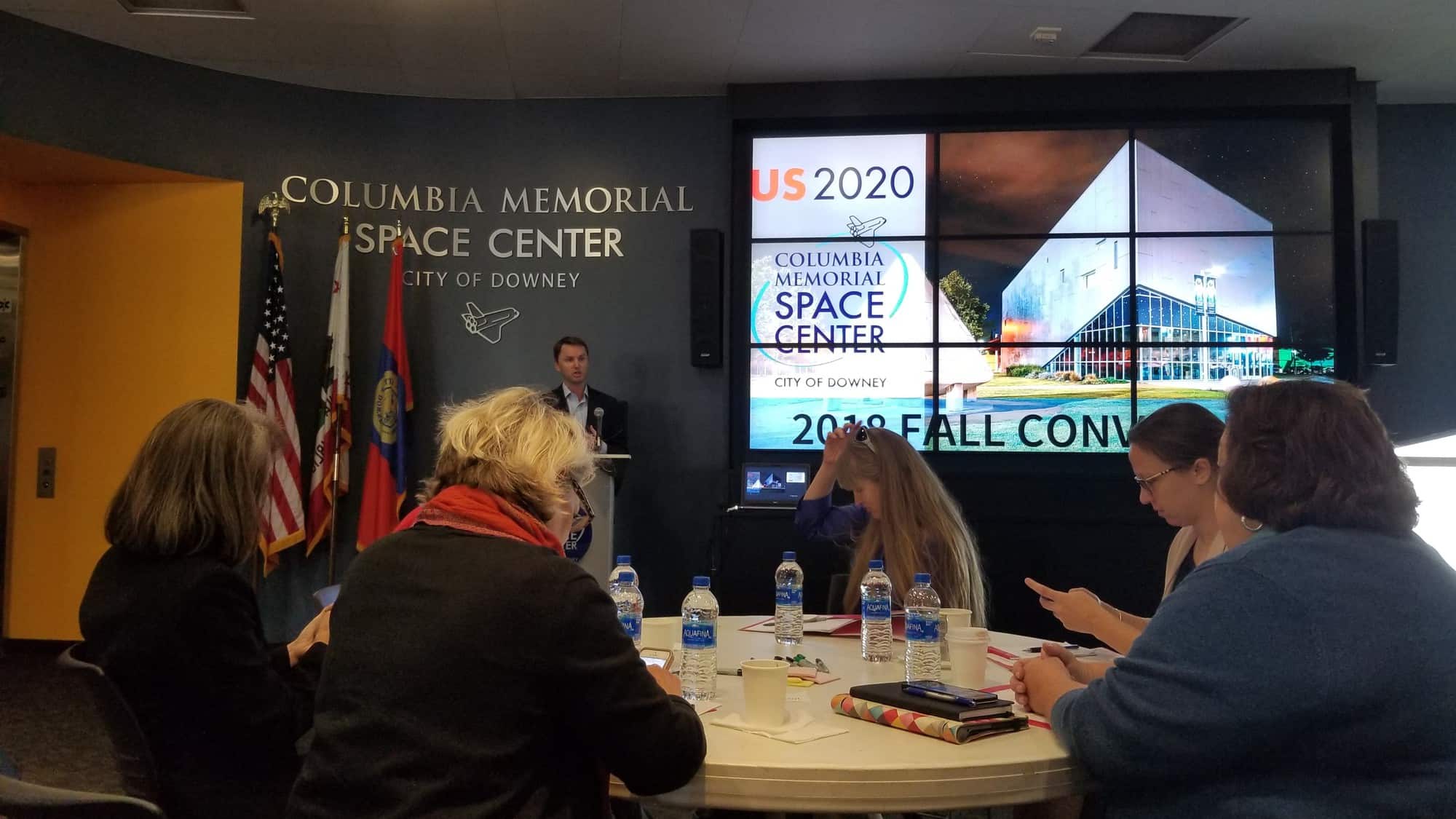 Kelsey Galante, Project Exploration STEM Co-op Manager, attended the US2020 Convening, hosted at the Columbia Memorial Space Center in Downey, California on November 13. Project Exploration represents Chicago as a City Network member with the US2020 coalition. US2020 supports Chicago’s work focused on Maker education, as well as scaling up the number of STEM mentors and promoting best practices among the mentors. Kelsey led discussions and participated in collaborative workshops with other City Network members from across the country. Through a session facilitated by Chris Nelson of the Association of Science Technology Centers, Kelsey worked with representatives from Cincinnati and Indianapolis to plan a summer collaboration titled, ‘Making in the Midwest—Summer of Science’. As this project moves forward, additional information will be provided. Her favorite session was facilitated by Mk Haley of Disney Imagineers. During this session, Mk offered participants an in-depth perspective of the power of storytelling and offered a new way to think about the power of experiential learning. Kelsey will be applying this idea to the experience at Project Exploration’s West Side STEM Learning Center.