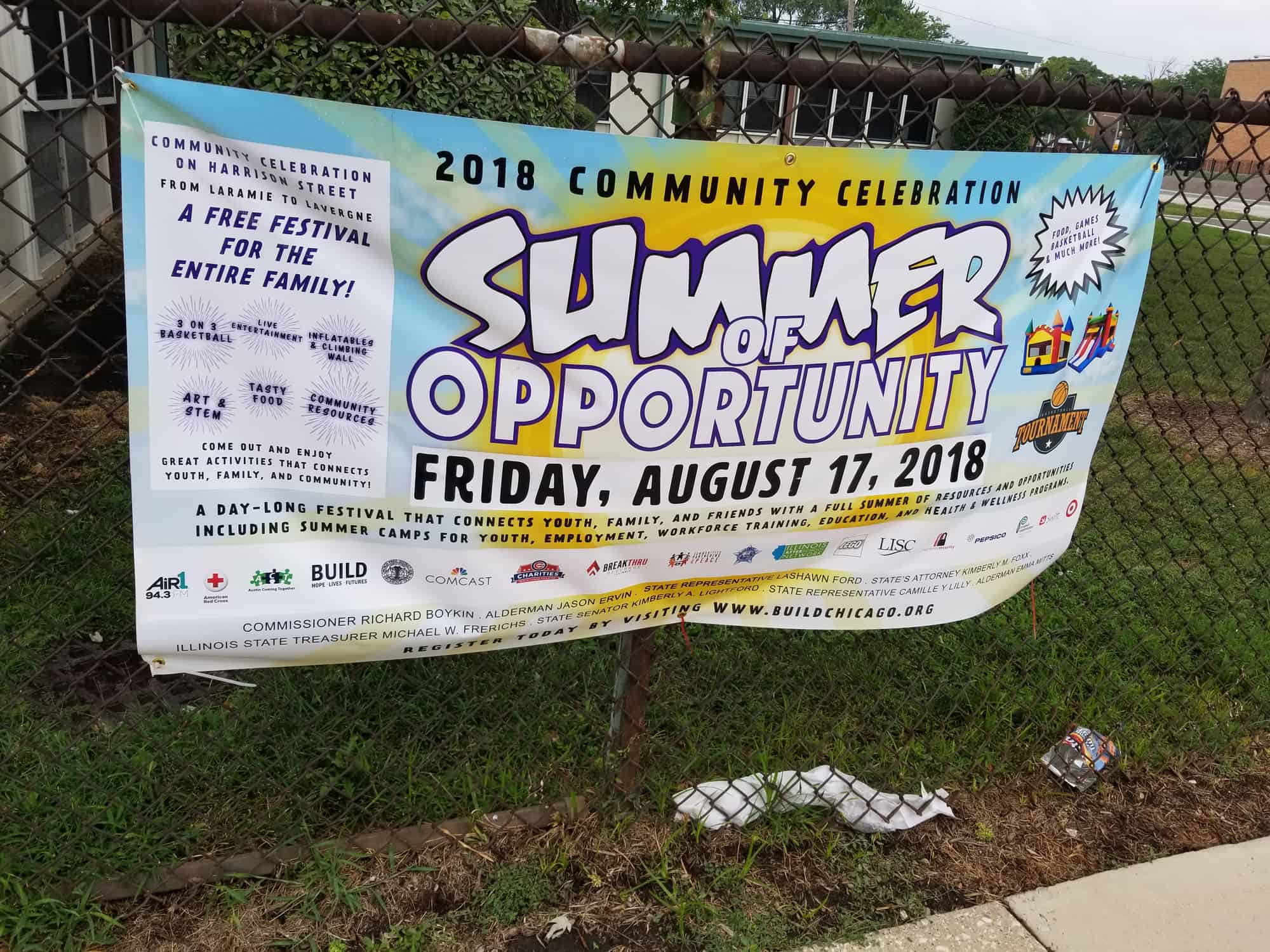 Walking down Harrison Street in Chicago’s Austin neighborhood on Friday, August 17th provided an inspiring and uplifting vision. Community members gathered together for BUILD’s Summer of Opportunity Community Celebration. This year, the Summer of Opportunity event connected thousands of youth and families to community opportunities– including employment, workforce training, park district programs, and health & wellness. The event also proved an opportunity to celebrate the many success of the summer.