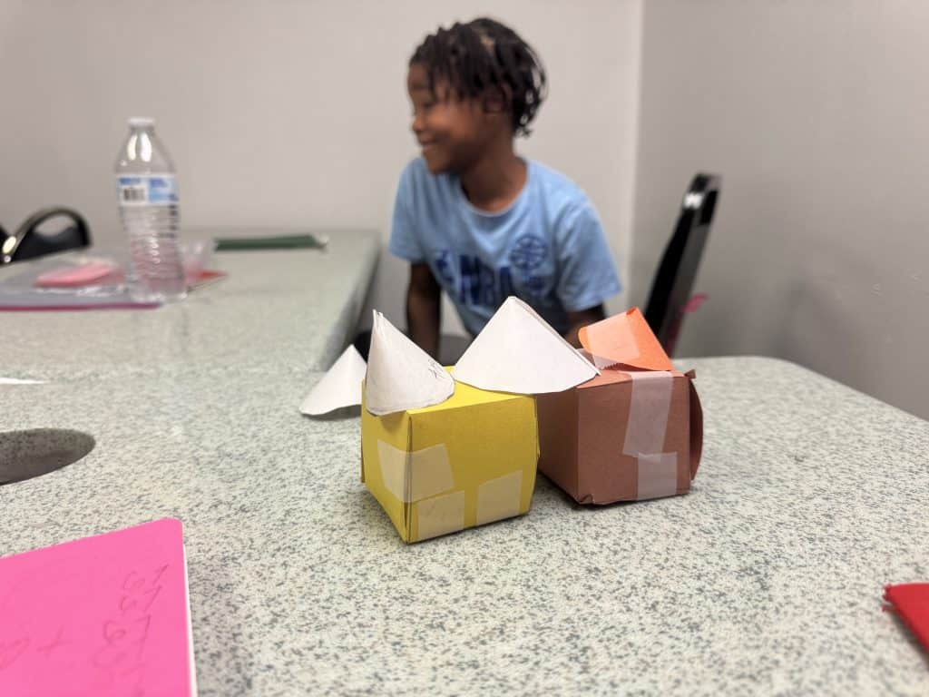 Later that day, the Brothers for Science engaged themselves in architectural layouts. The young architects learned hands-on about modeling and geometry and physics as they built paper, multi-story structures of their choice—before presenting on their ideas. Some pairs built elaborate hotels for esteemed guests.