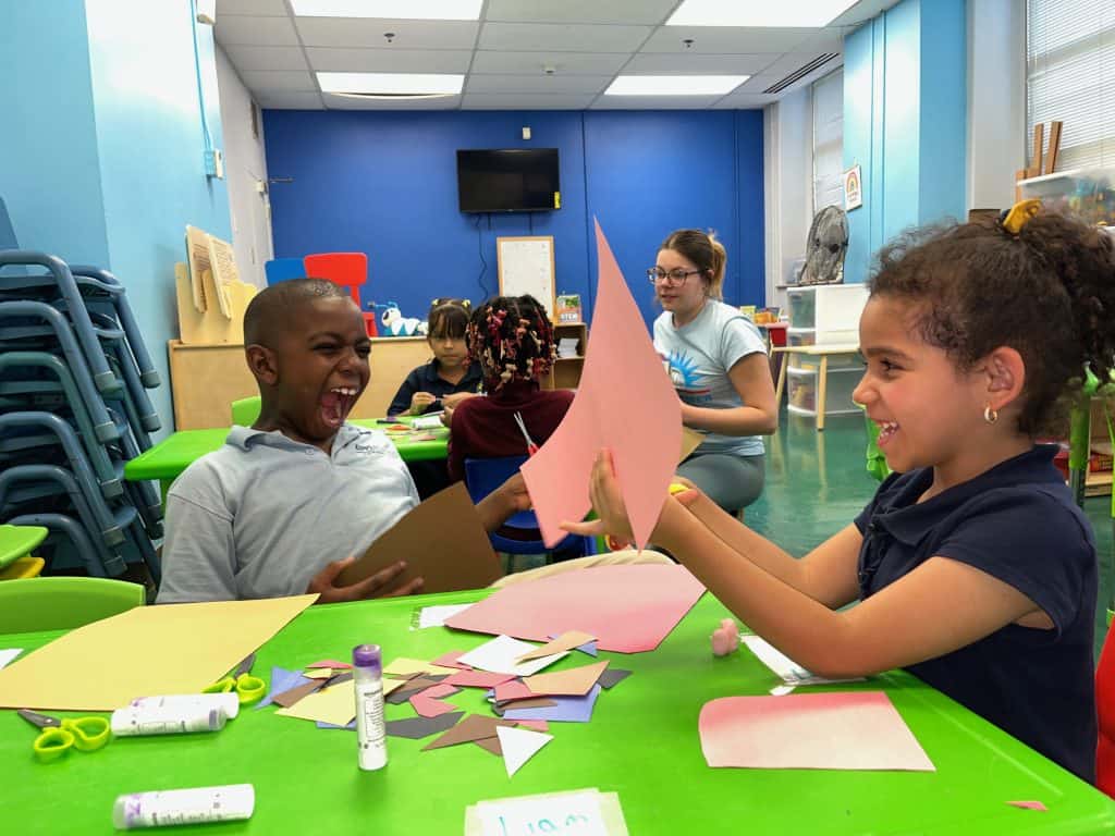 In the Building Block Club (K-2) students cut out construction paper to make visuals expressing themselves. Photo by Liliana Lopez-Nino for Project Exploration.