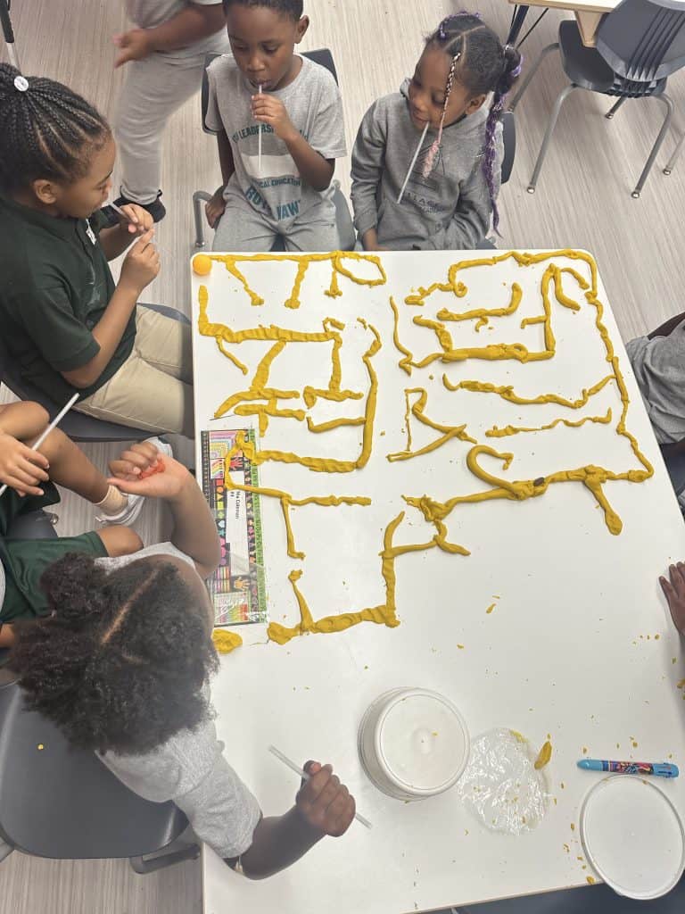 At It Takes A Village, students are getting to know each other through Teambuilding activities like Play Dough Maze, where students build a maze of their own design then swap mazes with another team to solve them together.