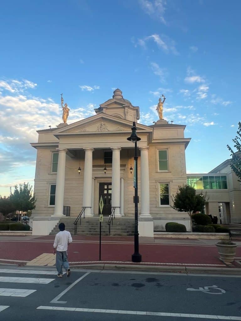 STEAMbassador Adán Juarez, another YREP participant, walks in front of Goldsboro City Hall. Photo by Luis Avila for Project Exploration.