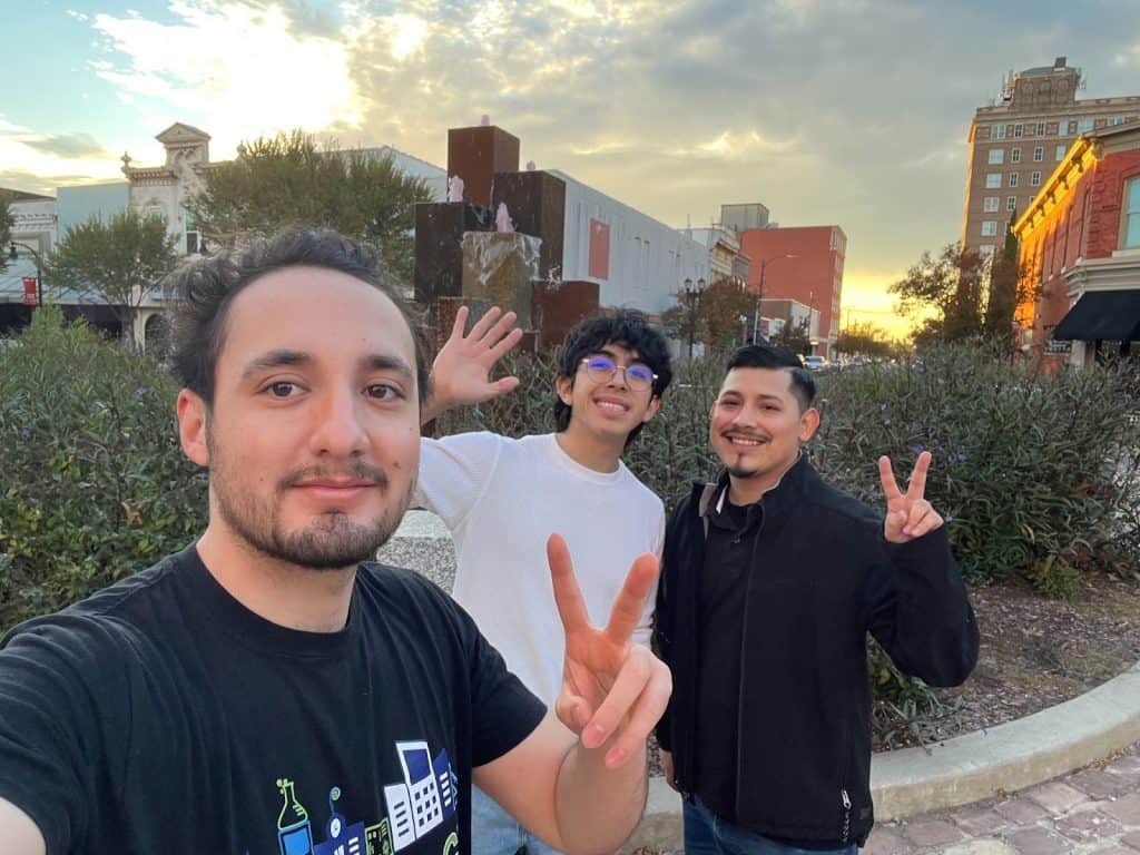 Left to right, STEAMbassadors Luis Avila, Adán Juarez and Miguel Juarez pose for a selfie in Goldsboro, North Carolina. Photo by Luis Avila for Project Exploration.