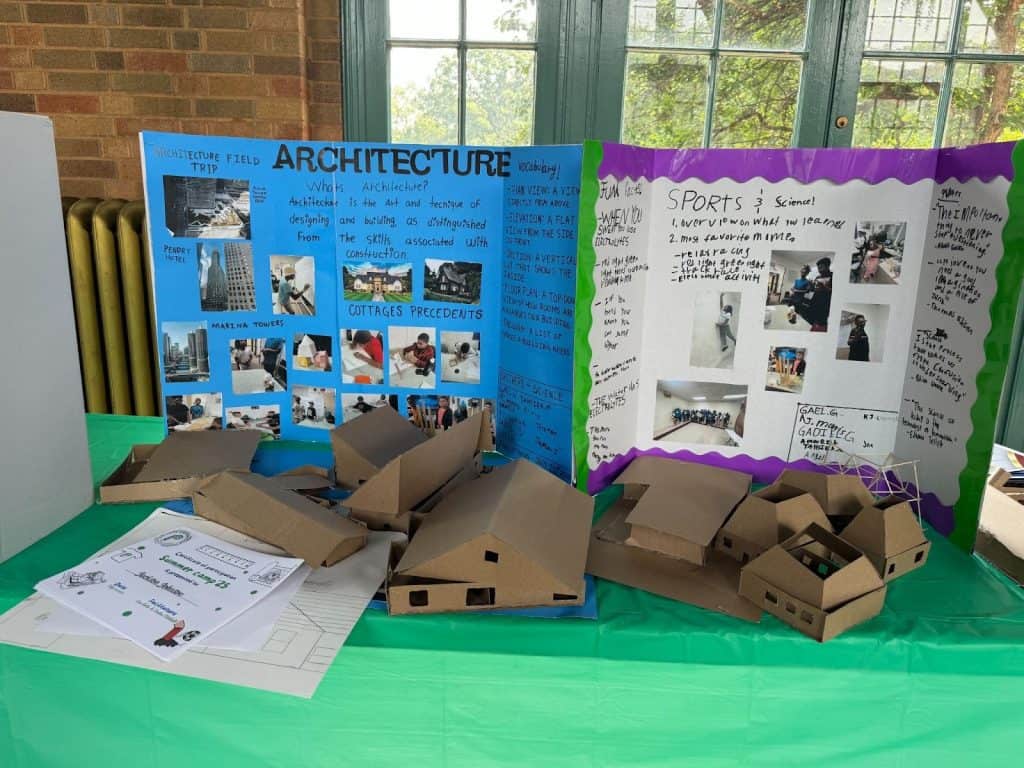 By the end of the program, students had made sophisticated models from cardboard and wood. They learned how to make a floor plan, different types of windows, columns, and rooms said Avila. Photo by Benjamin Cummings for Project Exploration.